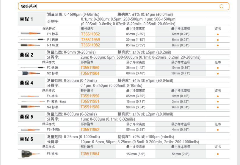 Elcometer355鐵基和非鐵基探頭 的各種探頭模塊能使 Elcometer 355 涂層測厚儀全面、靈活地適應所所有的測量用途。根據要求,探頭模塊可自由互換,在鐵(F)和非鐵(N)金屬基體上都可以。在各種涂層和基體上,大多數探頭模塊的讀數度可以達到±1%。遠端探頭從 410mm (16”)延伸至 1100mm (43”)。